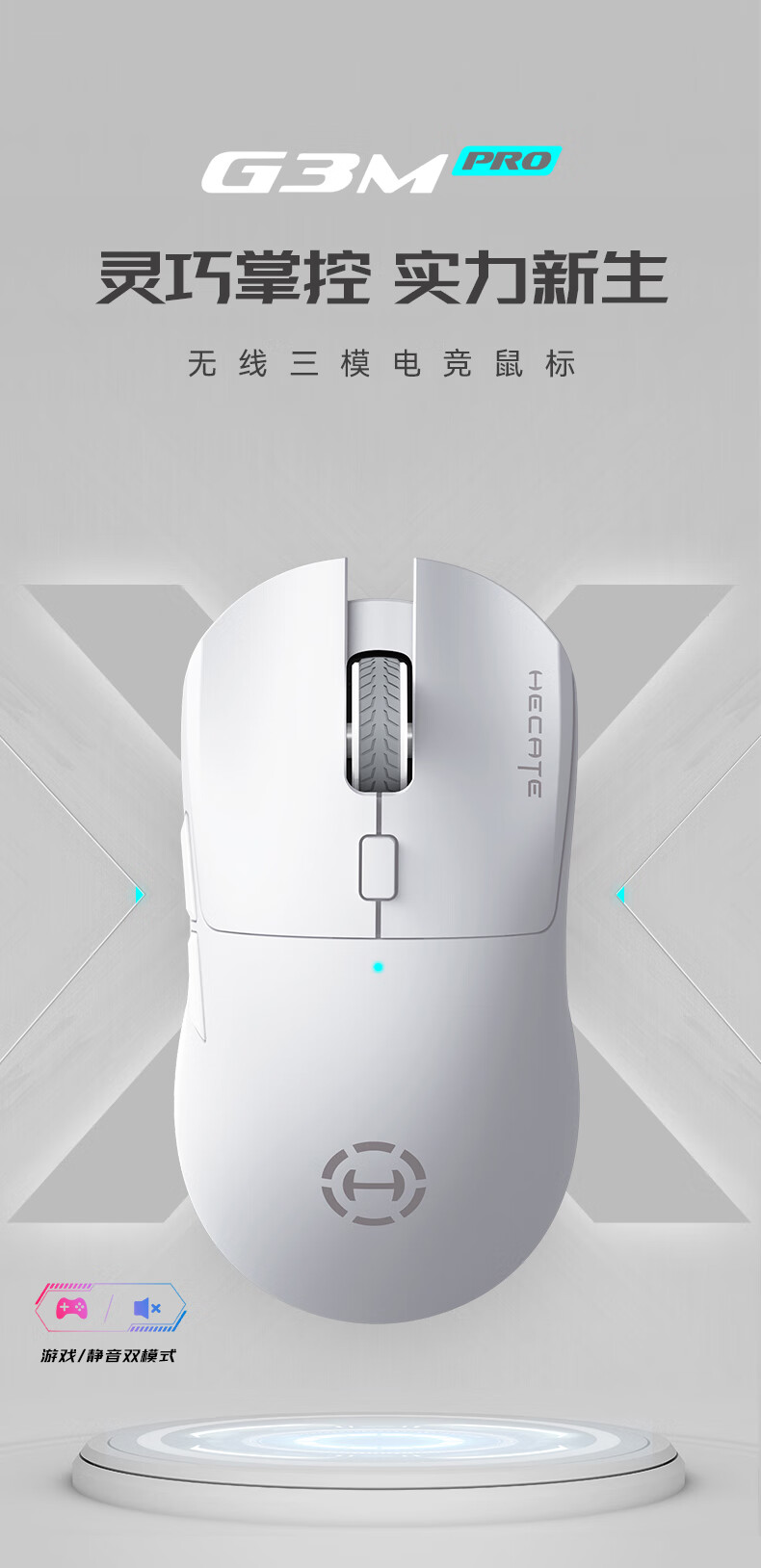 漫步者HECATE G3Mpro无线游戏鼠标 有线蓝牙三模电竞鼠标 办公静音鼠标3395轻量化设计 白色+定制防滑贴