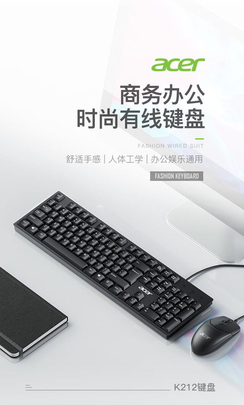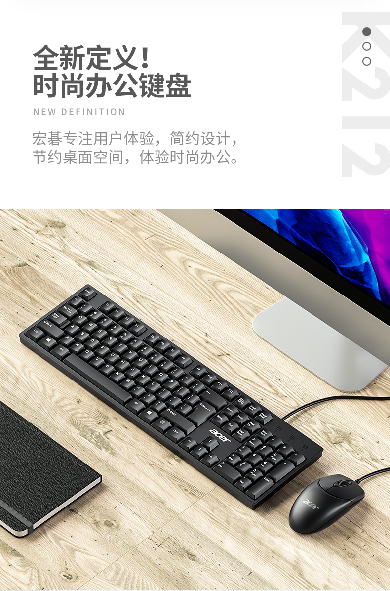 宏碁(acer) 键盘 有线键盘 办公键盘 笔记本键盘 电脑键盘 防泼溅 经典手感 K-212B