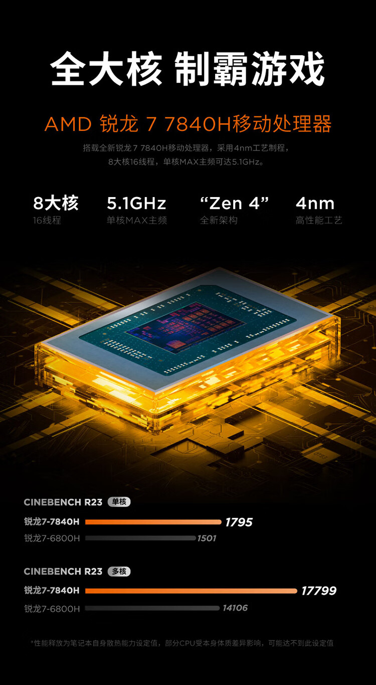联想(Lenovo)拯救者R7000 游戏笔记本电脑 15.6英寸超能电竞本(R7-7840H 16G 512G RTX4060显卡 高刷高色域屏)