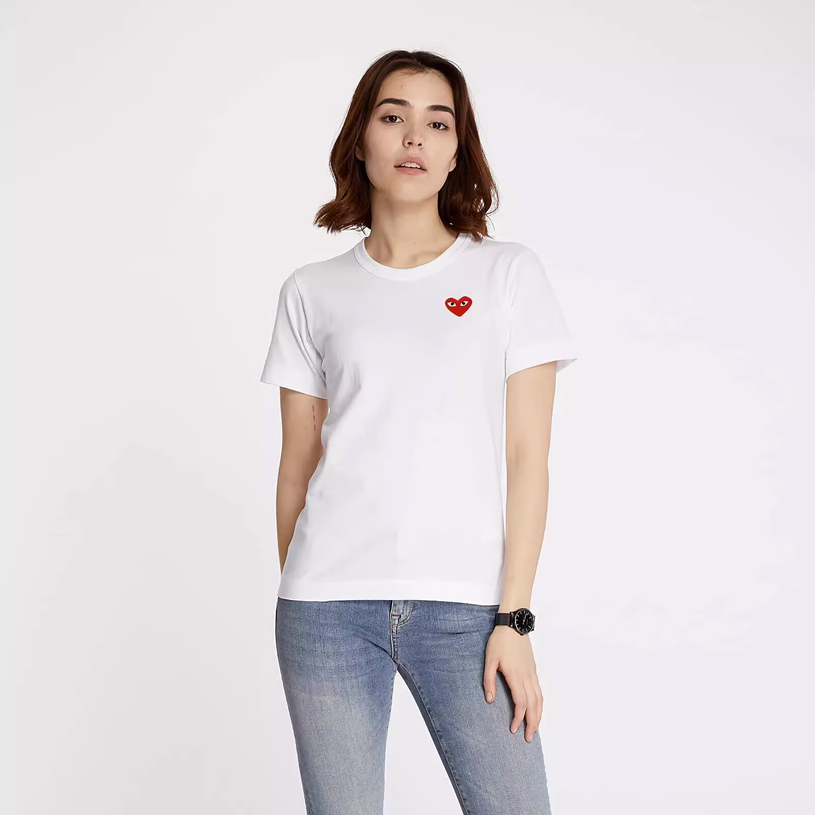 COMME DES GARCONS川久保玲PLAY红心黑心经典CDG爱心印花刺绣短袖t恤休闲男女情侣款 黑色黑心 男XXL