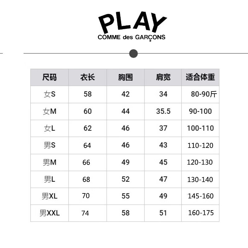 商品名称:COMME DES GARCONS川久保玲PLAY红心黑心经典CDG爱心印花刺绣短袖t恤休闲男女情侣款 黑色黑心 男XXL