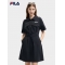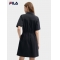 FILA 斐乐官方女子梭织连衣裙2024夏季新款时尚宽松翻领收腰裙子 正黑色-BK 170/88A/L