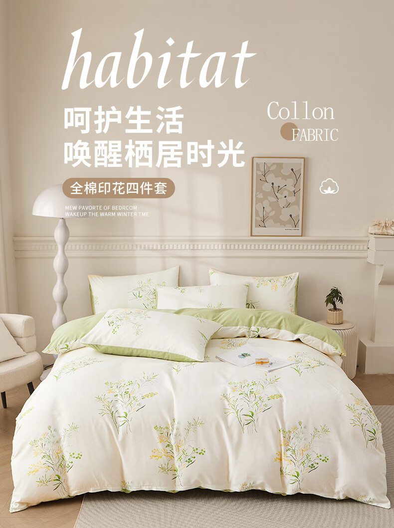 洁丽雅(Grace)100%纯棉四件套新疆棉床上用品床单被套200*230cm1.5/1.8米床