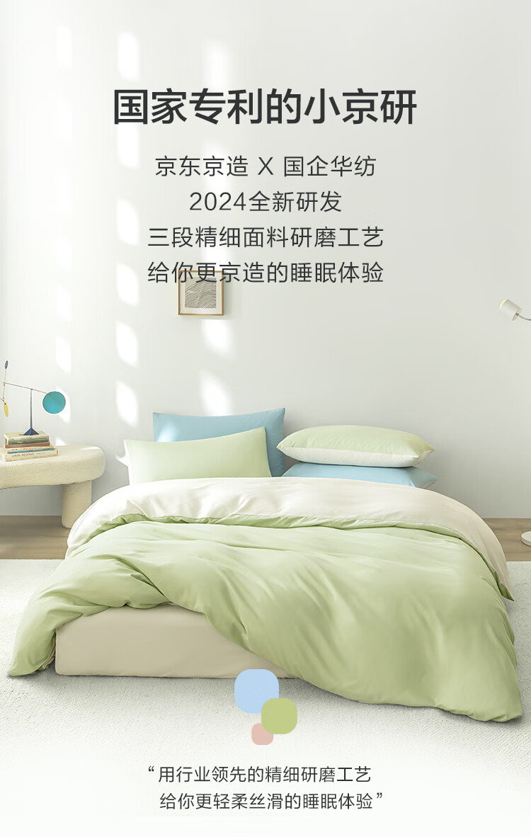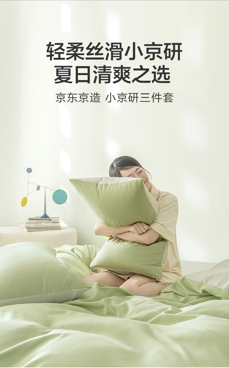 京东京造小京研三件套 100g轻柔夏季A类床单被套床上三件套 1.2米床 芽绿